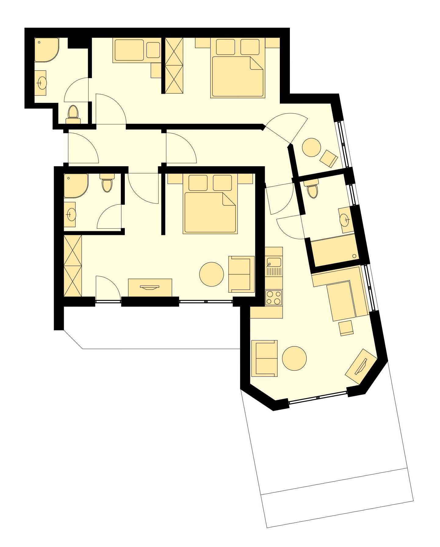 2 getrennte Schlafzimmer mit Dusche/WC (1 x mit 3 Betten)